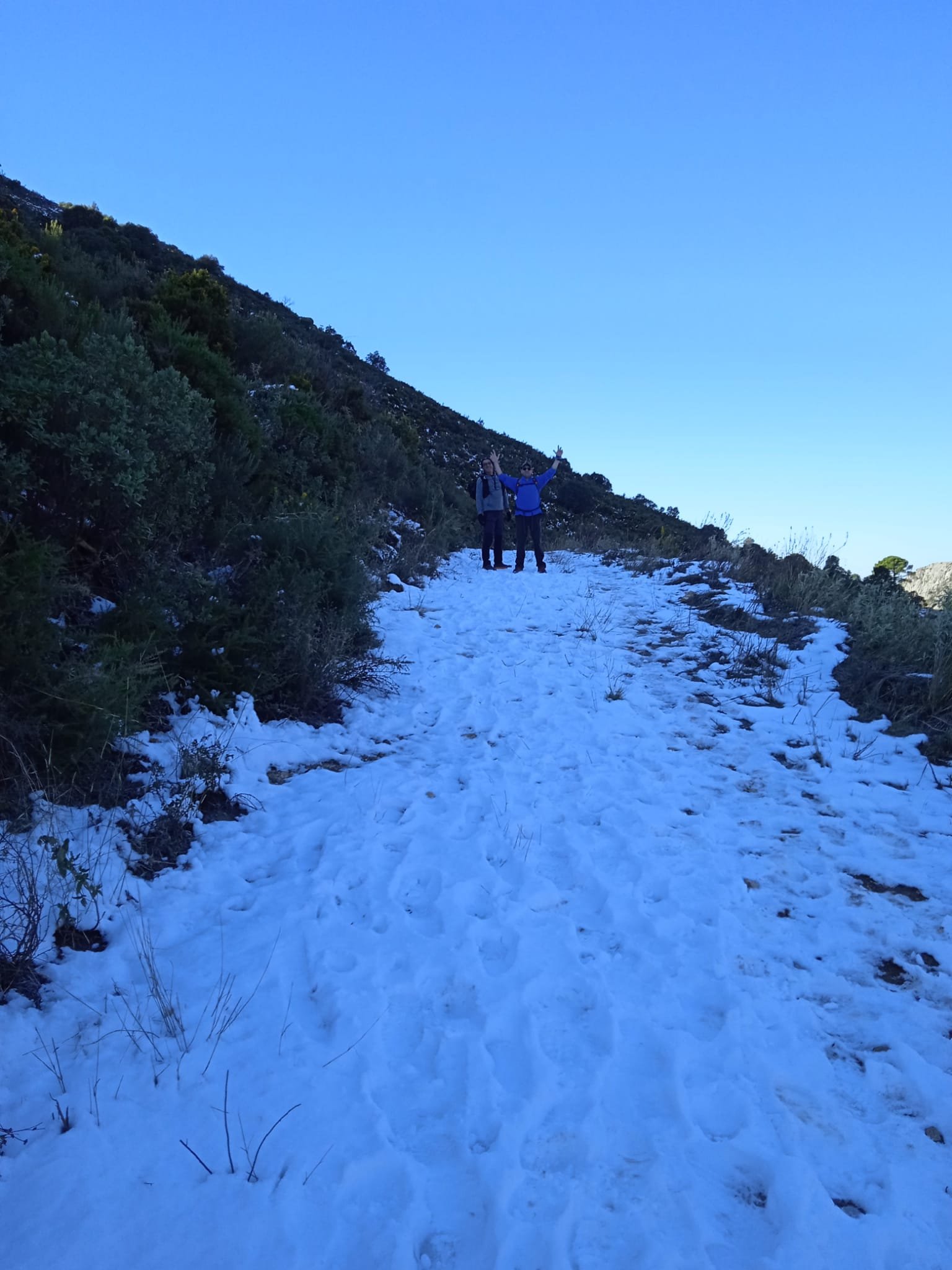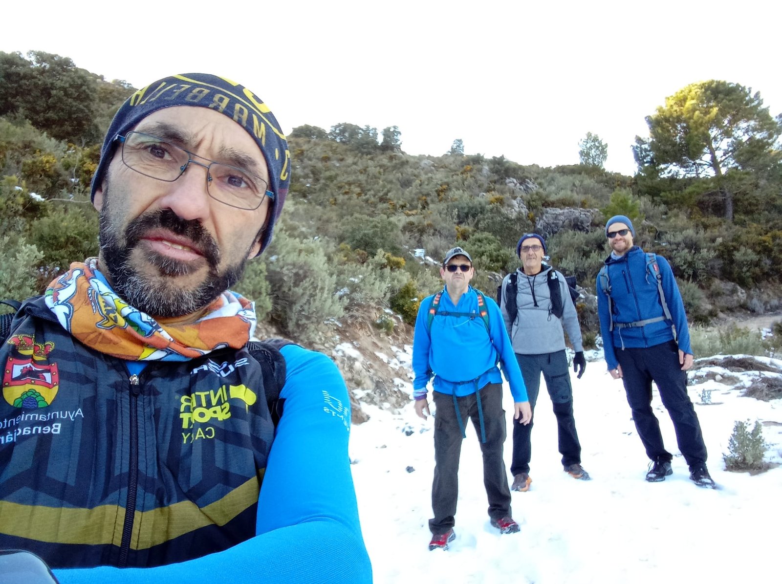 Actividad de Senderismo de CEM 29/01/2023, 4 integrantes del club efectuaron ruta circular en Sierra Blanca, de aproximadamente 9 kilómetros y unos 500 metros de desnivel por los preciosos parajes cubiertos de algo de nieve de Sierra Banca. La actividad comenzó en el aparcamiento del refugio de Juanar y que tras una prolongada subida se llega a la cota de Pozuelo, para continuar por la cara norte de Serra Blanca, con vistas a la impresionante mole del pico Torrecillas, la Sierra Real y las Apretaderas, y en dirección a poniente para llegar al mágico lugar de los Pulpitos, para posteriormente tomar el carril de Juan Ingles y bajar a los mágicos bosques de Juanar, para terminar a la entrada del Refugio del mismo nombre y lugar de partida